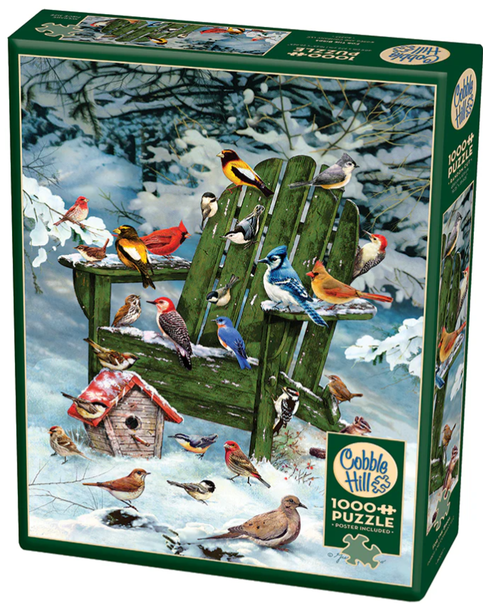 Nestled in a snowy winter wonderland, a festive green Adirondack chair offers the perfect perch for feathered visitors. Surrounded by chickadees, woodpeckers, and other woodland friends, it seems this peaceful spot was placed just For the Birds. A charming scene that captures the quiet beauty of nature during the holidays.