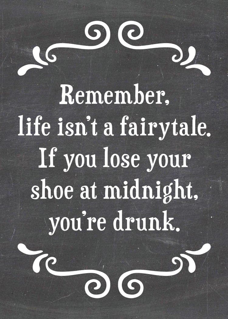 “Remember life isn’t a fairytale. If you lose your shoe at midnight, you’re drunk.”
