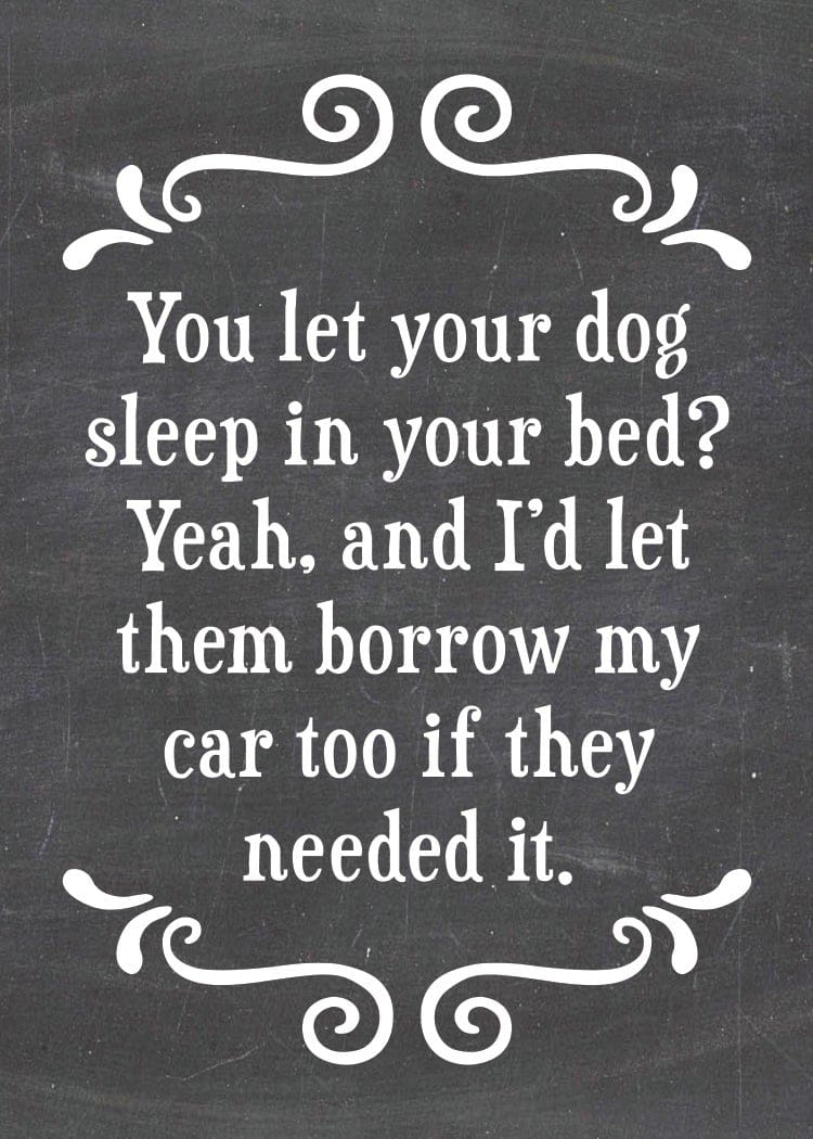 “You let your dog sleep in the bed? Yeah, and I’d let them borrow my car if they needed it.”